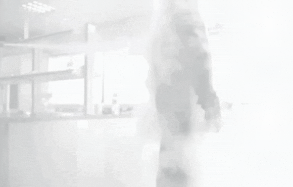 厚さ45mm以上、重さ約1.3kgのダウンジャケットを-20℃の冷蔵庫で着用。1分間熱損失(保温性)実験を行い、1分後表面温度を測定。